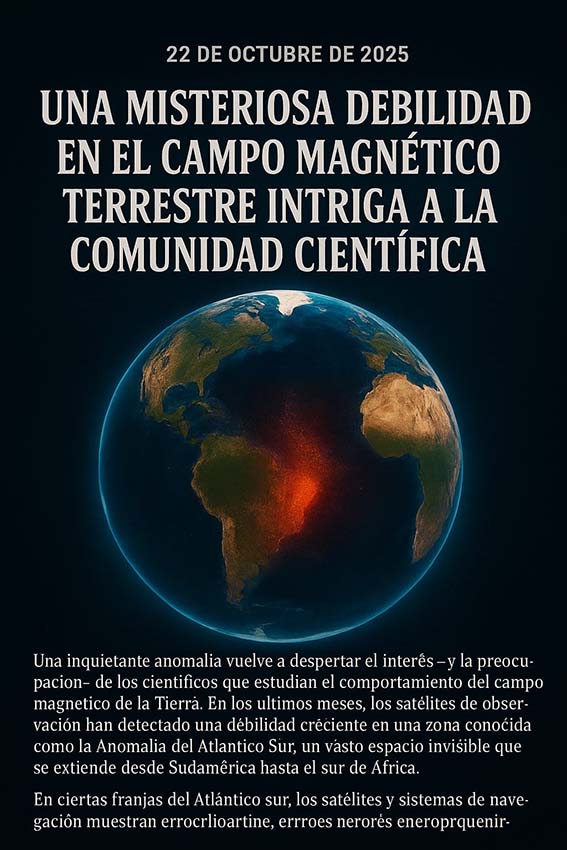 Una inquietante anomalía vuelve a despertar el interés —y la preocupación— de los científicos que estudian el comportamiento del campo magnético de la Tierra. En los últimos meses, los satélites de observación han detectado una debilidad creciente en una zona conocida como la Anomalía del Atlántico Sur, un vasto espacio invisible que se extiende desde Sudamérica hasta el sur de África.